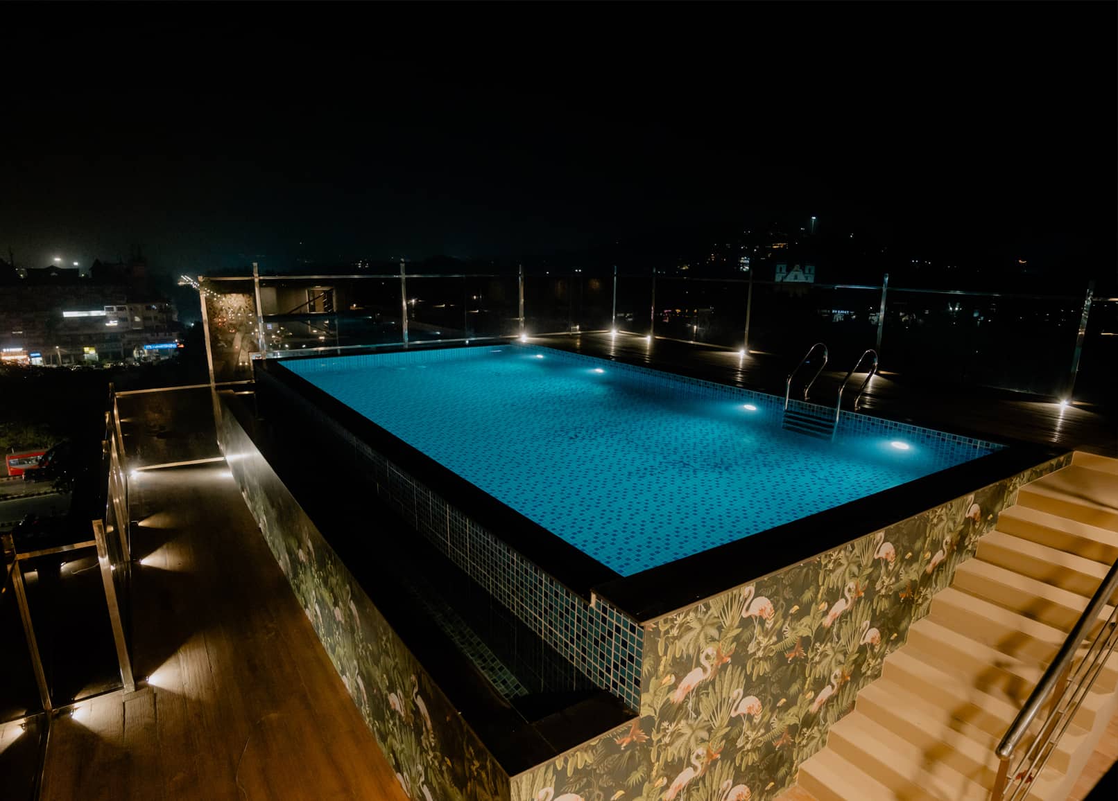Experience relaxation at our rooftop infinity pool, offering breathtaking cityside views and a serene atmosphere above the vibrant streets of Margao. Designed for both leisure and tranquility, the pool provides the perfect space to unwind, take a refreshing swim, or simply enjoy the panoramic skyline. Whether it’s a calm morning dip or a peaceful evening by the water, the infinity pool creates a memorable and elevated stay experience.