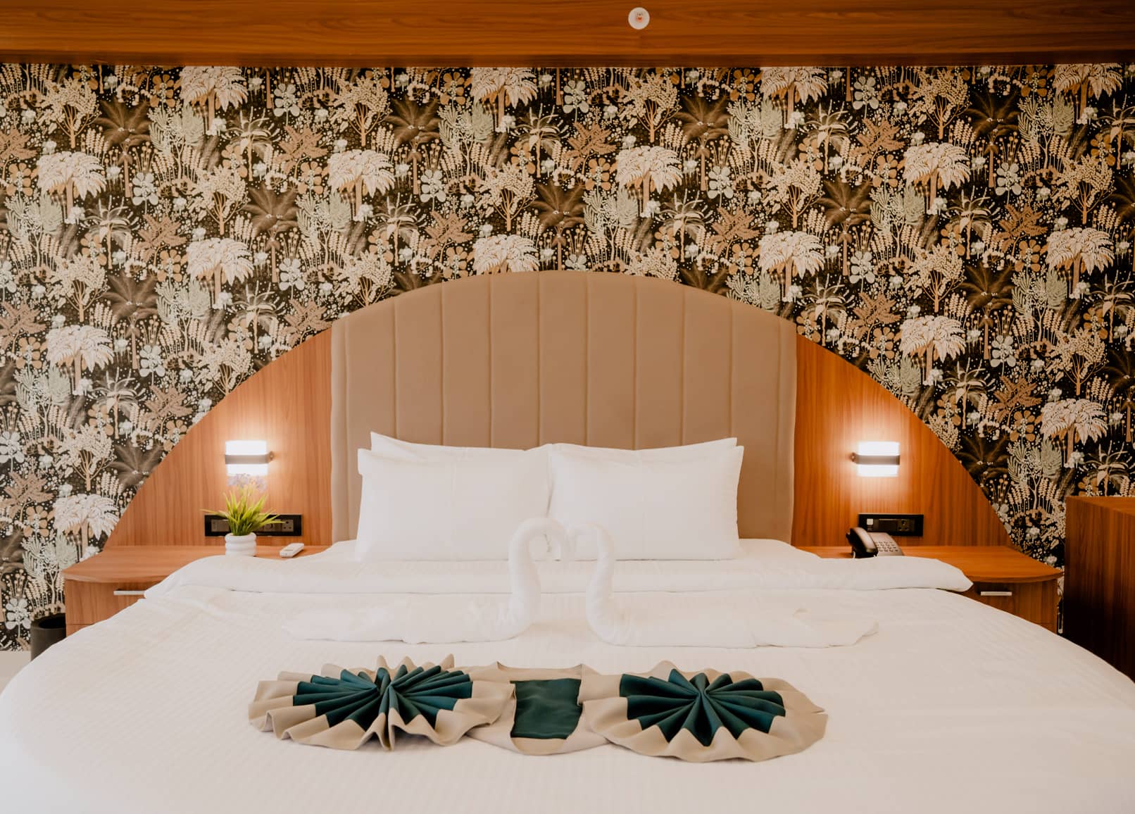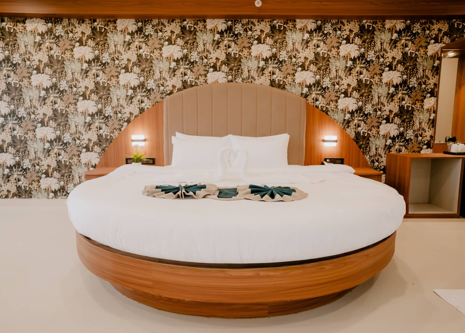 Spacious and elegantly designed suite with a King size bed and luxurious interiors, crafted for guests seeking comfort, privacy, and indulgence. The Royal Suite features a generous layout with premium furnishings, a relaxing bathtub, comfortable seating area, work desk, wardrobe, attached bathroom with luxury fittings, tea and coffee maker, LED TV, and complimentary high-speed Wi-Fi and LAN connectivity, ensuring a refined and memorable stay experience.
